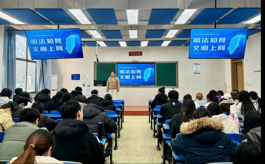 为迎接第12个国家宪法日,太阳成tyc33455cc于12月3日上午11:00举办“明法知畏·文明上网”研究生网络法治素养提升主题班会。研究生辅导员王一帆老师主讲,100余名研究生代表到场聆听。